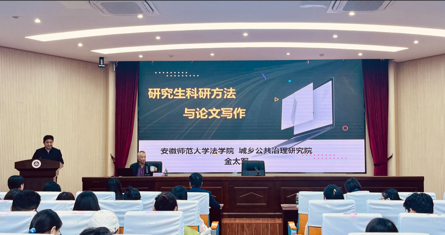 11月12日下午,安徽师范大学博士生导师金太军教授应邀来校,作了题为“研究生科研方法与论文写作”学术报告。报告会由校党委常委、副校长张开炳主持,研究生部(党委研究生工作部)负责人及校人文社科专业研究生参加报告会。
