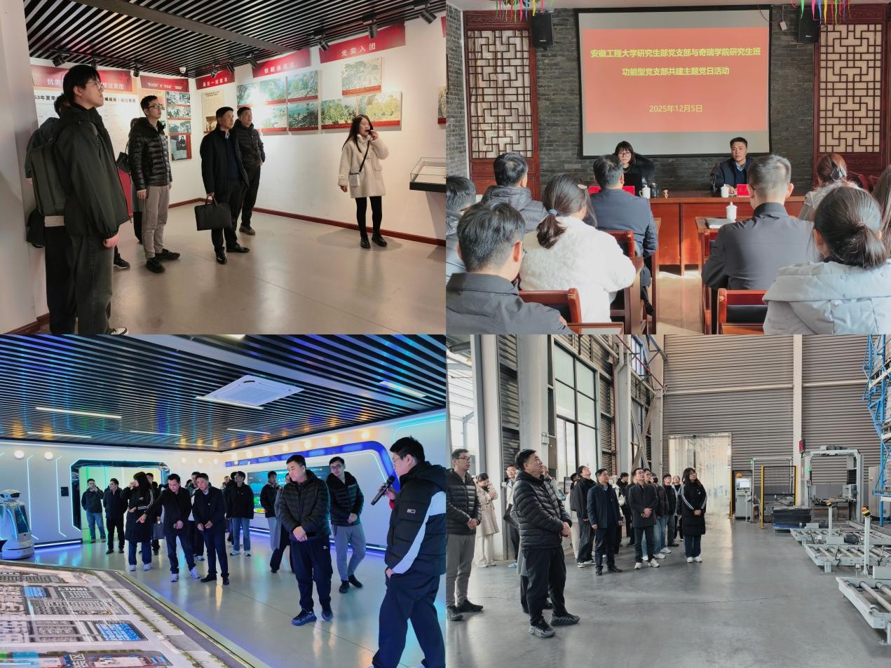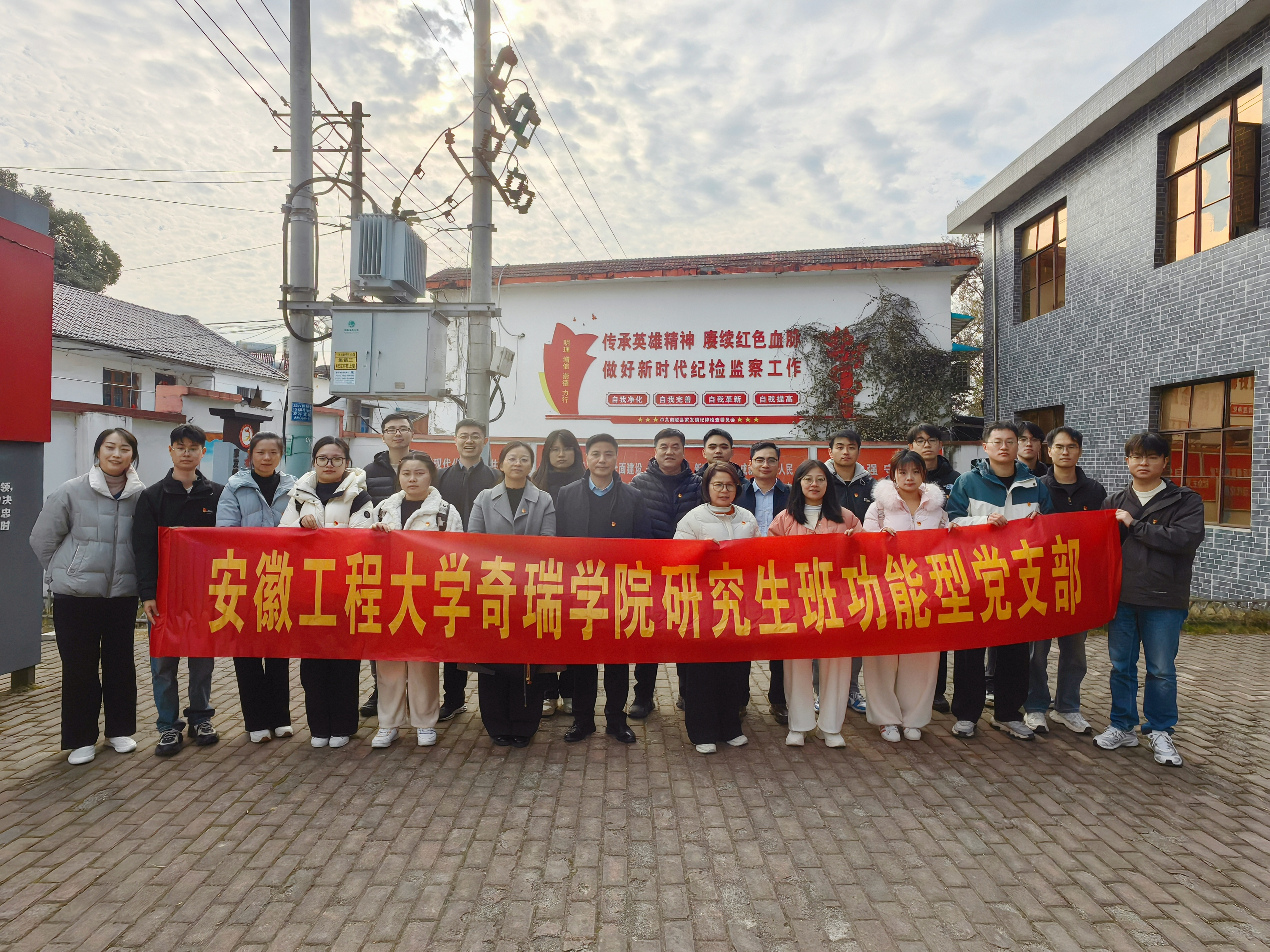 为深入推进学习贯彻党的二十届四中全会精神,强化党建引领,促进产学研融合,12月5日,奇瑞学院研究生班功能型党支部与研究生部党支部赴南陵县,联合开展了一场以“红色传承砺初心科创驱动担使命”为主题的共建党日活动。