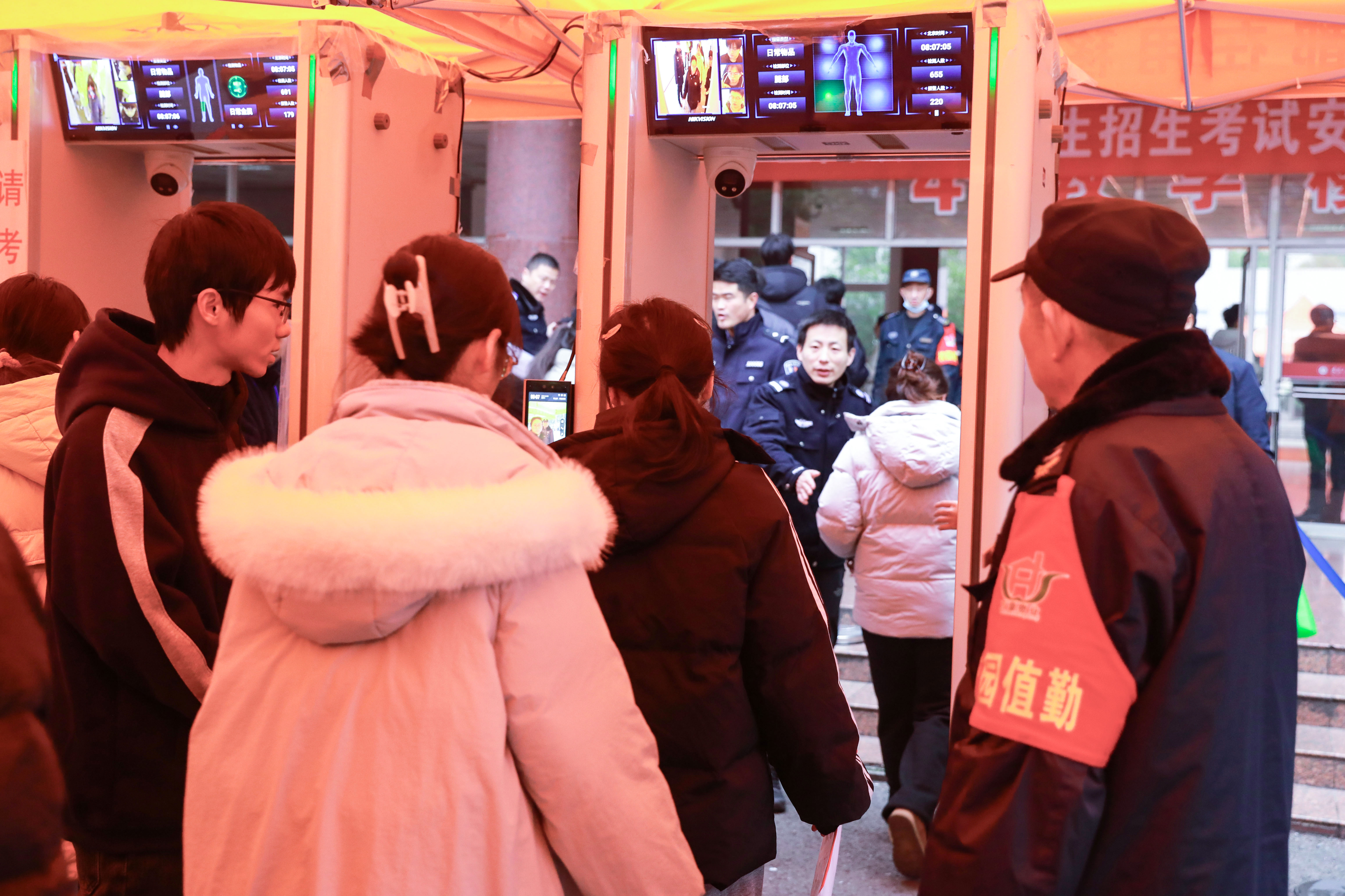 考点全面落实人防、物防、技防措施,构建全方位安全保障体系,所有考场均配备高清视频监控、无线信号屏蔽设备,并全面采用“智能安检门”系统,实现对违规物品的高效筛查,有力维护考试的公平公正。